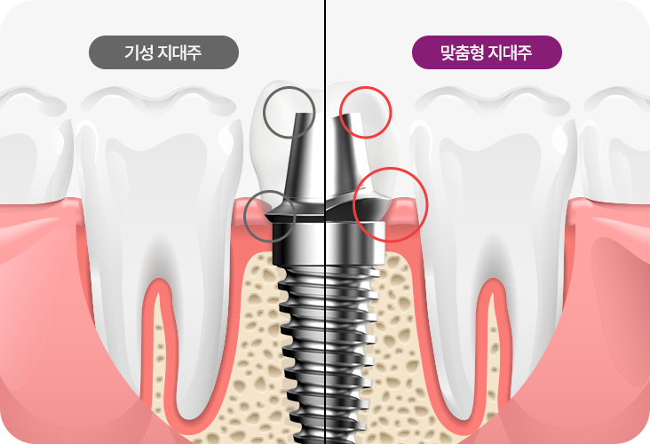 환자의 잇몸과 치아에 맞춘 지대주를 사용해 최종 보철물과의 틈을 감소시키며